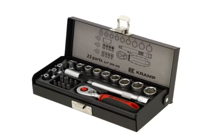 | Descriere detaliată | Set mini de chei tubulare profesionale compus din 23 piese diferite, cu pătrat de antrenare 1/4", clichet reversibil cu dinți fini, fabricate din oțel vanadium cromat. Într-o cutie de metal bine organizată, puternică și durabilă. | |