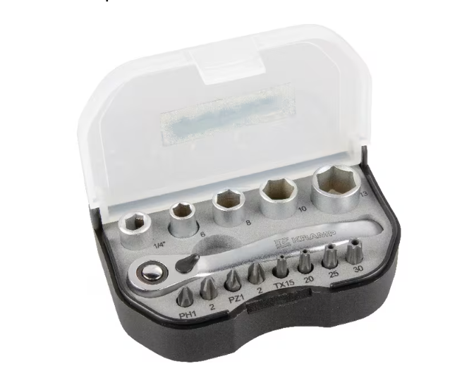| Descriere detaliată | Set mini de chei tubulare profesionale cu profil interior sau exterior compus din 14 piese diferite, cu pătrat de antrenare 1/4", clichet reversibil cu dinți fini, fabricate din oțel vanadium cromat. Într-o cutie de depozitare mică, bine organizată și practică. | |