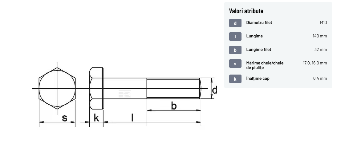 | Descriere detaliată | Șurub cu cap hexagonal, filet parțial, lungimea este măsurată de sub cap. ISO 4014 înlocuiește DIN 931: conform ISO, dimensiune cheilor 16, 18, 21 și 34 sunt acum pentru M10, M12, M14 și, respectiv, M22. | |