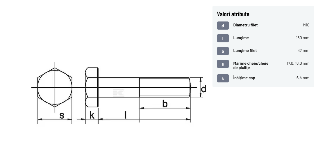 | Descriere detaliată | Șurub cu cap hexagonal, filet parțial, lungimea este măsurată de sub cap. ISO 4014 înlocuiește DIN 931: conform ISO, dimensiune cheilor 16, 18, 21 și 34 sunt acum pentru M10, M12, M14 și, respectiv, M22. | |