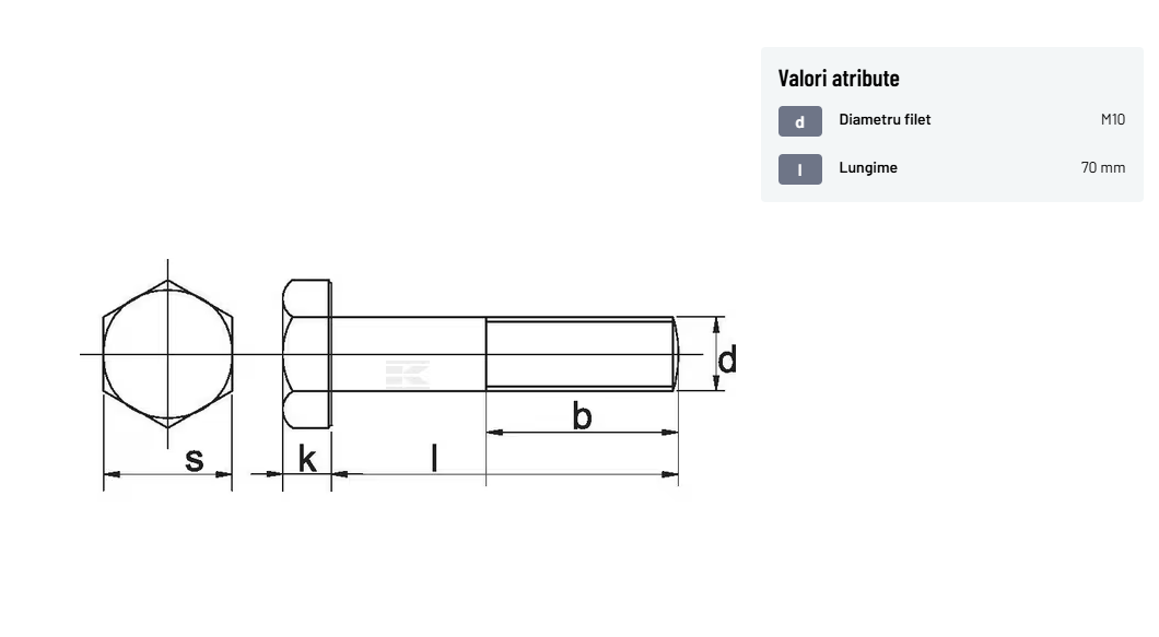 | Descriere detaliată | Șurub cu cap hexagonal, filet parțial, lungimea este măsurată de sub cap. ISO 4014 înlocuiește DIN 931: conform ISO, dimensiune cheilor 16, 18, 21 și 34 sunt acum pentru M10, M12, M14 și, respectiv, M22. | |