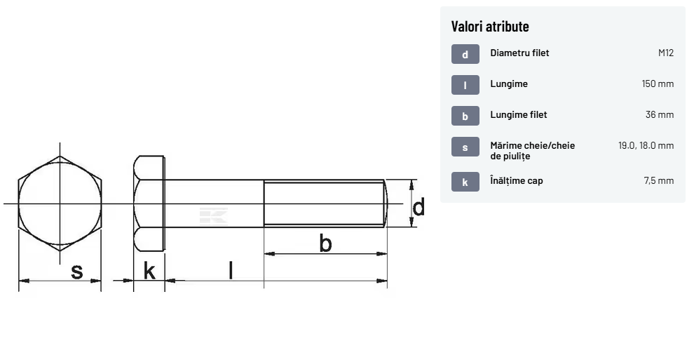 | Descriere detaliată | Șurub cu cap hexagonal, filet parțial, lungimea este măsurată de sub cap. ISO 4014 înlocuiește DIN 931: conform ISO, dimensiune cheilor 16, 18, 21 și 34 sunt acum pentru M10, M12, M14 și, respectiv, M22. | |