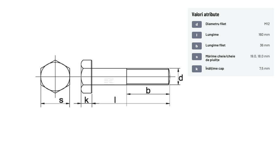 | Descriere detaliată | Șurub cu cap hexagonal, filet parțial, lungimea este măsurată de sub cap. ISO 4014 înlocuiește DIN 931: conform ISO, dimensiune cheilor 16, 18, 21 și 34 sunt acum pentru M10, M12, M14 și, respectiv, M22. | |
