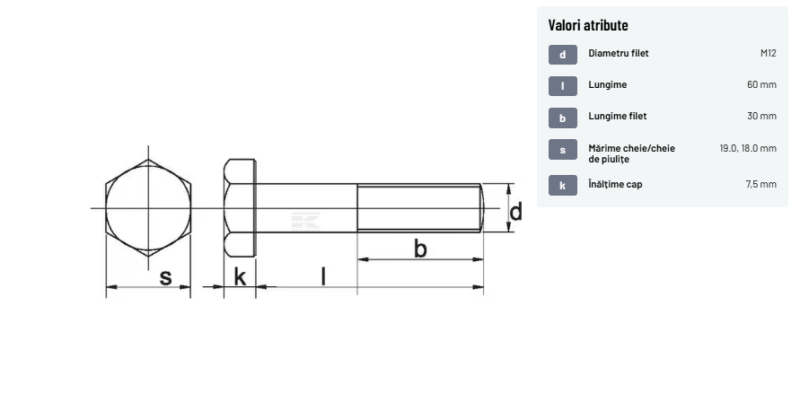 | Descriere detaliată | Șurub cu cap hexagonal, filet parțial, lungimea este măsurată de sub cap. ISO 4014 înlocuiește DIN 931: conform ISO, dimensiune cheilor 16, 18, 21 și 34 sunt acum pentru M10, M12, M14 și, respectiv, M22. | |