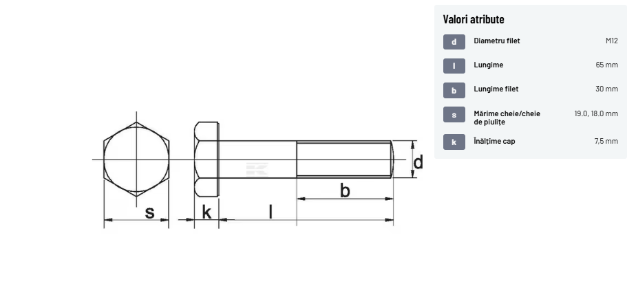 | Descriere detaliată | Șurub cu cap hexagonal, filet parțial, lungimea este măsurată de sub cap. ISO 4014 înlocuiește DIN 931: conform ISO, dimensiune cheilor 16, 18, 21 și 34 sunt acum pentru M10, M12, M14 și, respectiv, M22. | |