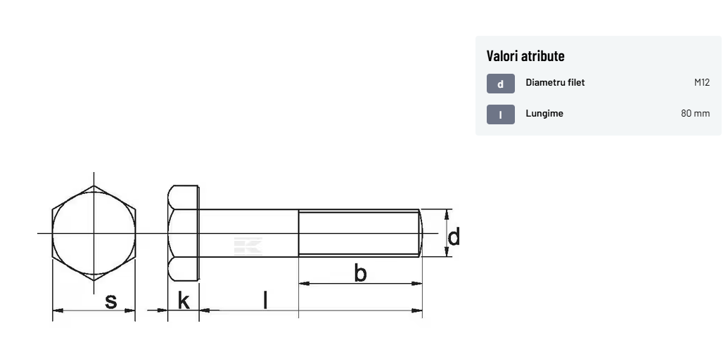 | Descriere detaliată | Șurub cu cap hexagonal, filet parțial, lungimea este măsurată de sub cap. ISO 4014 înlocuiește DIN 931: conform ISO, dimensiune cheilor 16, 18, 21 și 34 sunt acum pentru M10, M12, M14 și, respectiv, M22. | |