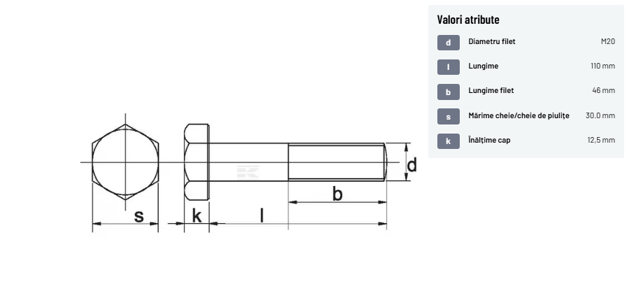 | Descriere detaliată | Șurub cu cap hexagonal, filet parțial, lungimea este măsurată de sub cap. ISO 4014 înlocuiește DIN 931: conform ISO, dimensiune cheilor 16, 18, 21 și 34 sunt acum pentru M10, M12, M14 și, respectiv, M22. | |