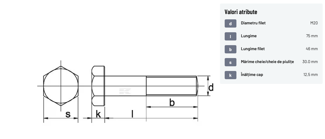 | Descriere detaliată | Șurub cu cap hexagonal, filet parțial, lungimea este măsurată de sub cap. ISO 4014 înlocuiește DIN 931: conform ISO, dimensiune cheilor 16, 18, 21 și 34 sunt acum pentru M10, M12, M14 și, respectiv, M22. | |