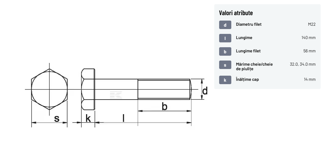 | Descriere detaliată | Șurub cu cap hexagonal, filet parțial, lungimea este măsurată de sub cap. ISO 4014 înlocuiește DIN 931: conform ISO, dimensiune cheilor 16, 18, 21 și 34 sunt acum pentru M10, M12, M14 și, respectiv, M22. | |