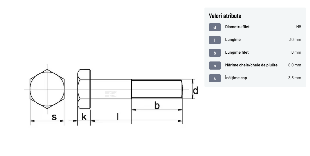 | Descriere detaliată | Șurub cu cap hexagonal, filet parțial, lungimea este măsurată de sub cap. ISO 4014 înlocuiește DIN 931: conform ISO, dimensiune cheilor 16, 18, 21 și 34 sunt acum pentru M10, M12, M14 și, respectiv, M22. | |