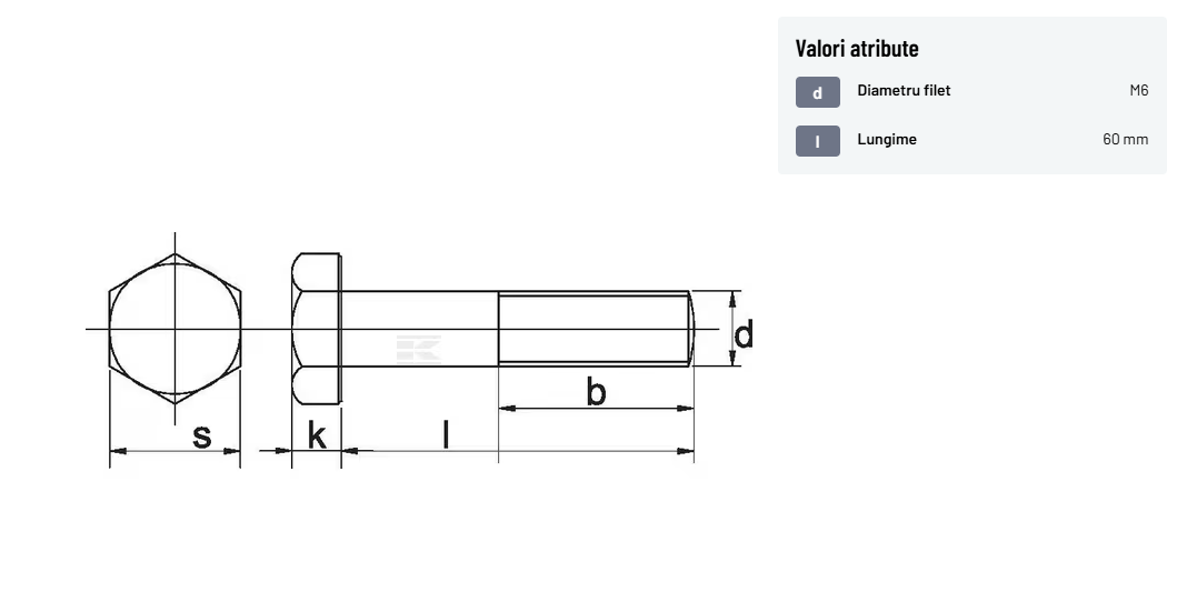 | Descriere detaliată | Șurub cu cap hexagonal, filet parțial, lungimea este măsurată de sub cap. ISO 4014 înlocuiește DIN 931: conform ISO, dimensiune cheilor 16, 18, 21 și 34 sunt acum pentru M10, M12, M14 și, respectiv, M22. | |