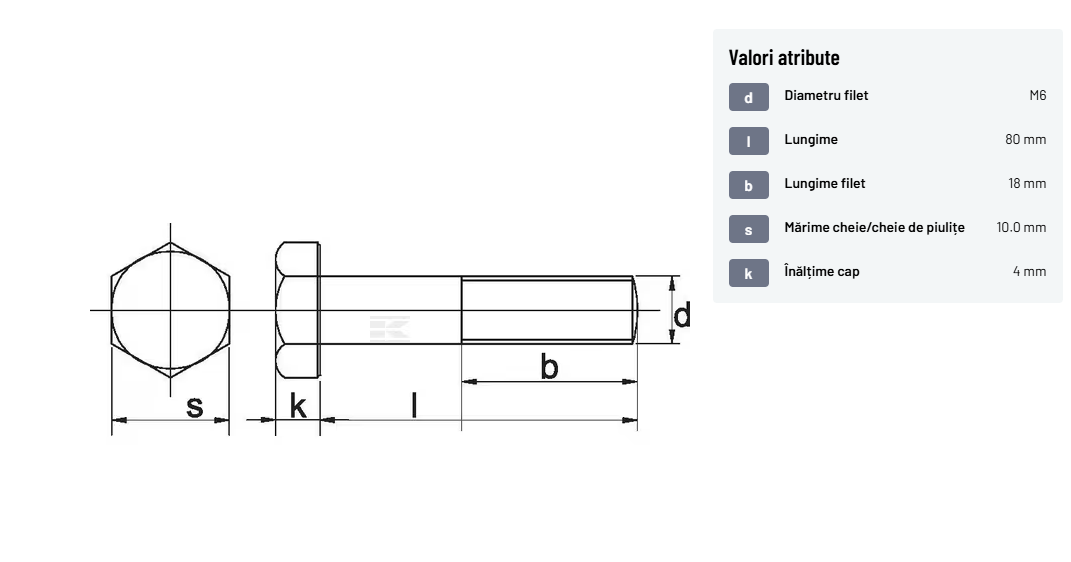 | Descriere detaliată | Șurub cu cap hexagonal, filet parțial, lungimea este măsurată de sub cap. ISO 4014 înlocuiește DIN 931: conform ISO, dimensiune cheilor 16, 18, 21 și 34 sunt acum pentru M10, M12, M14 și, respectiv, M22. | |