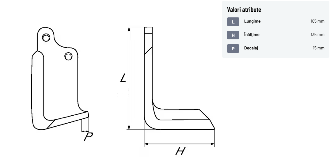 Cuțit freză rotație dreapta 165x135x80mm grosime 7mm potrivit pentru Maschio