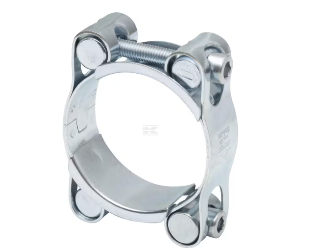 | Descriere detaliată | Clemă de furtun foarte robustă din 2 piese, cu bandă dublă pentru o forță de strângere foarte mare, din oțel zincat în întregime. Intervalul de strângere este indicat pe banda de strângere prin intermediul unui text imprimat. | |