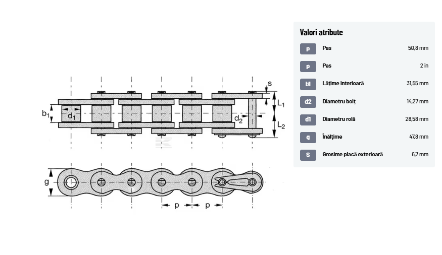 | d1Diametru rolă | 28,58 mm | |