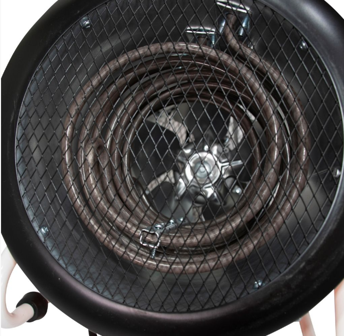 Aeroterma electrică RURIS VULCANO 500 se poate roti la un unghi de 30 de grade pentru a avea un debit mai mare de aer.