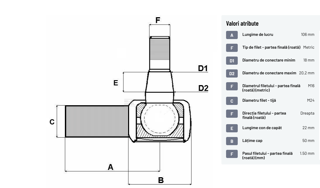| FDirecția filetului - partea finală (roată) | Dreapta |