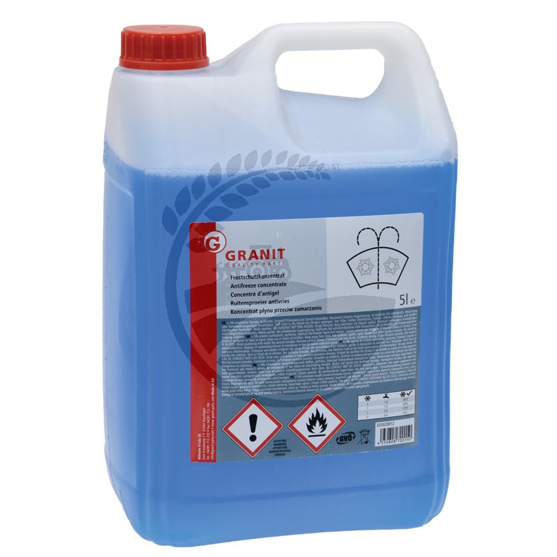 Utilizare: Refrigerantul GRANIT pentru instalatiile de spalare a geamurilor este un detergent foarte eficient impotriva inghetului, cu o capacitate ridicata de curatare si comptabilitate optima la diverse materiale. Previne inghetul instalatiei de spalat geamuri, cu un efect exceptional de diluare a stratului inghetat. Refrigerantul GRANIT are capacitatea dilueaza cu usurinta geamurile inghetate, asadar indeparteaz cu usurinta stratul de gheata depus. Efectul este de lunga durata si previne un nou inghet, dar si inghetarea duzei. Nu contine Metanol si Fosfat. Duze lamelare potrivite pentru un raport de amestec de la 1:1 si pana la -20°. Temperaturi exterioare (VW standardizare centrala TL 521 64 / DIN 51 562 T.1).