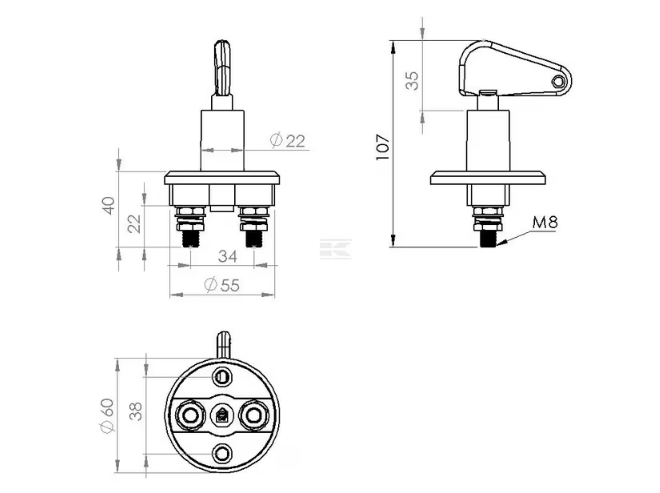 | Extra info | Sarcină maximă 1000A (12V - 10 sec.) - 500A (24V - 10 sec.) 2 x M8 |