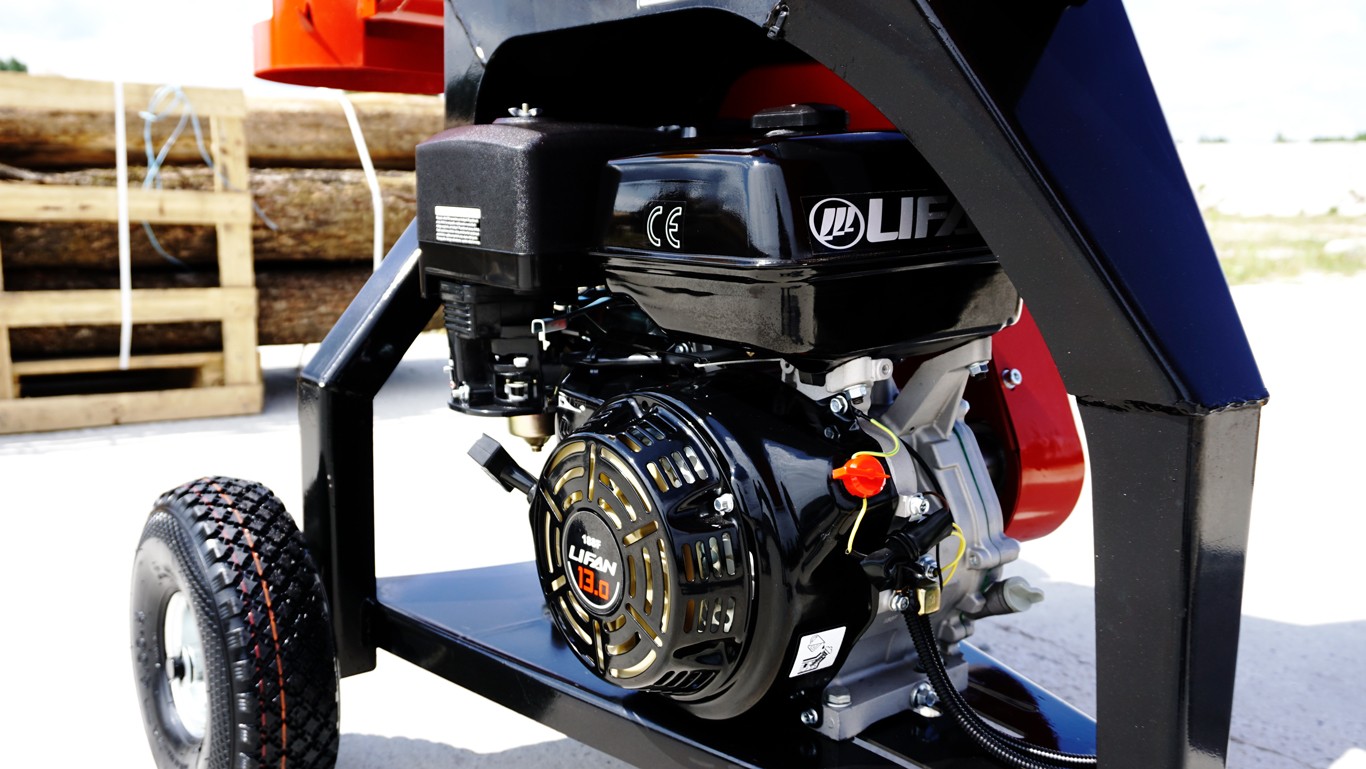 Tocător REMET RS 100 este acționat cu motor benzină de 15 CP.