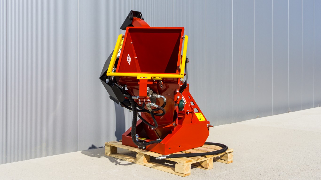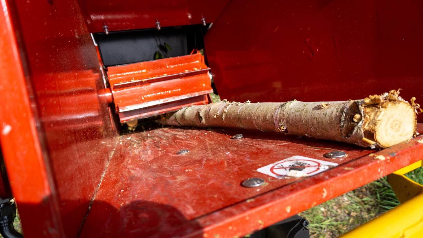 Tocătorul are un sistem hidraulic de tragere a lemnului.