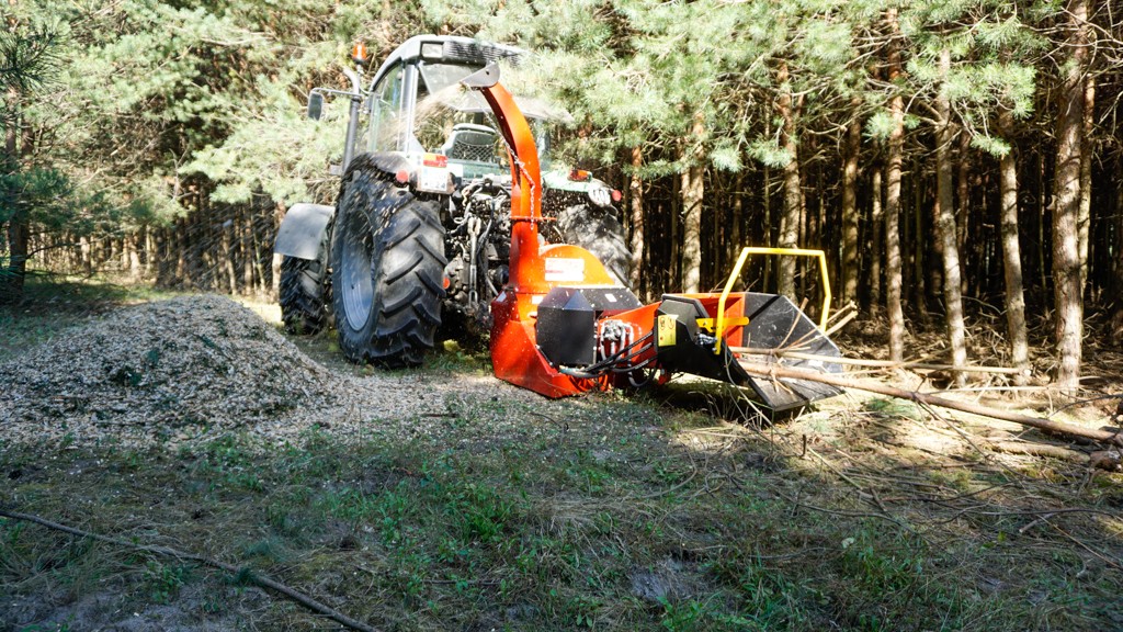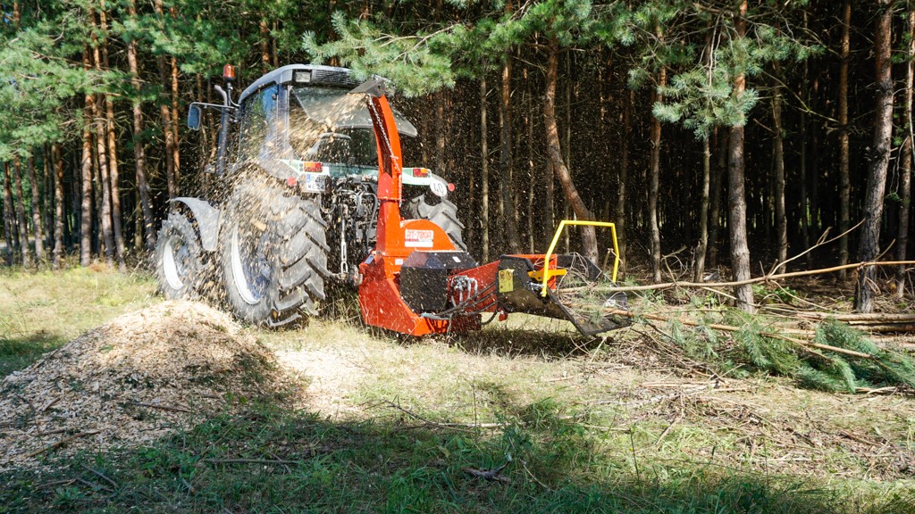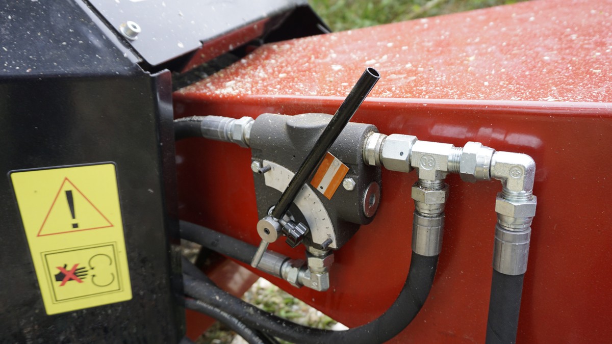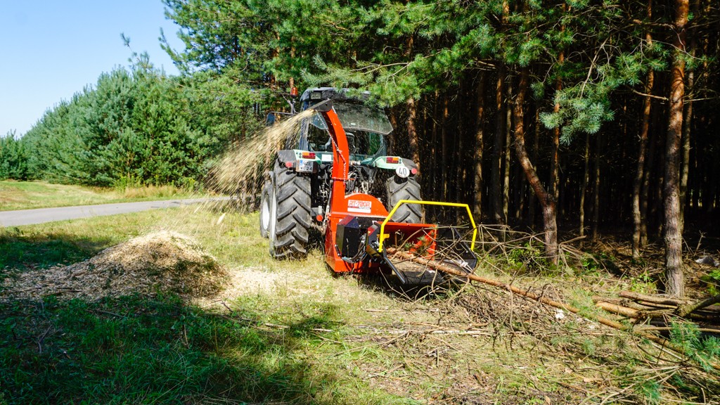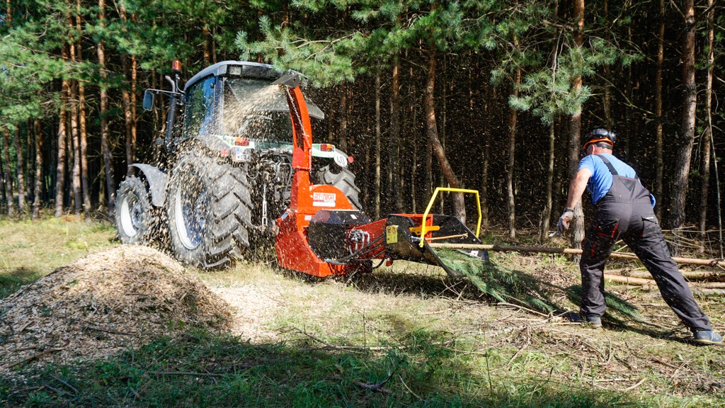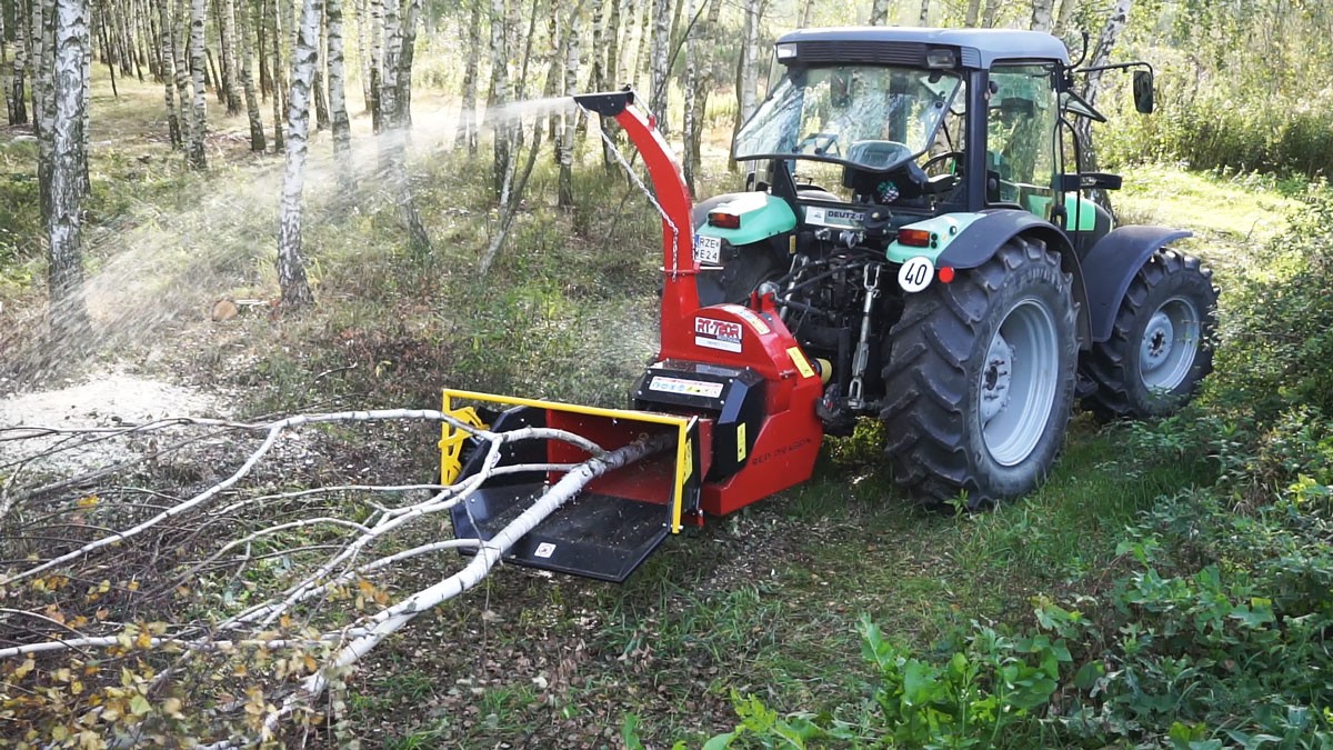 Tocătorul are un sistem hidraulic de tragere a lemnului.