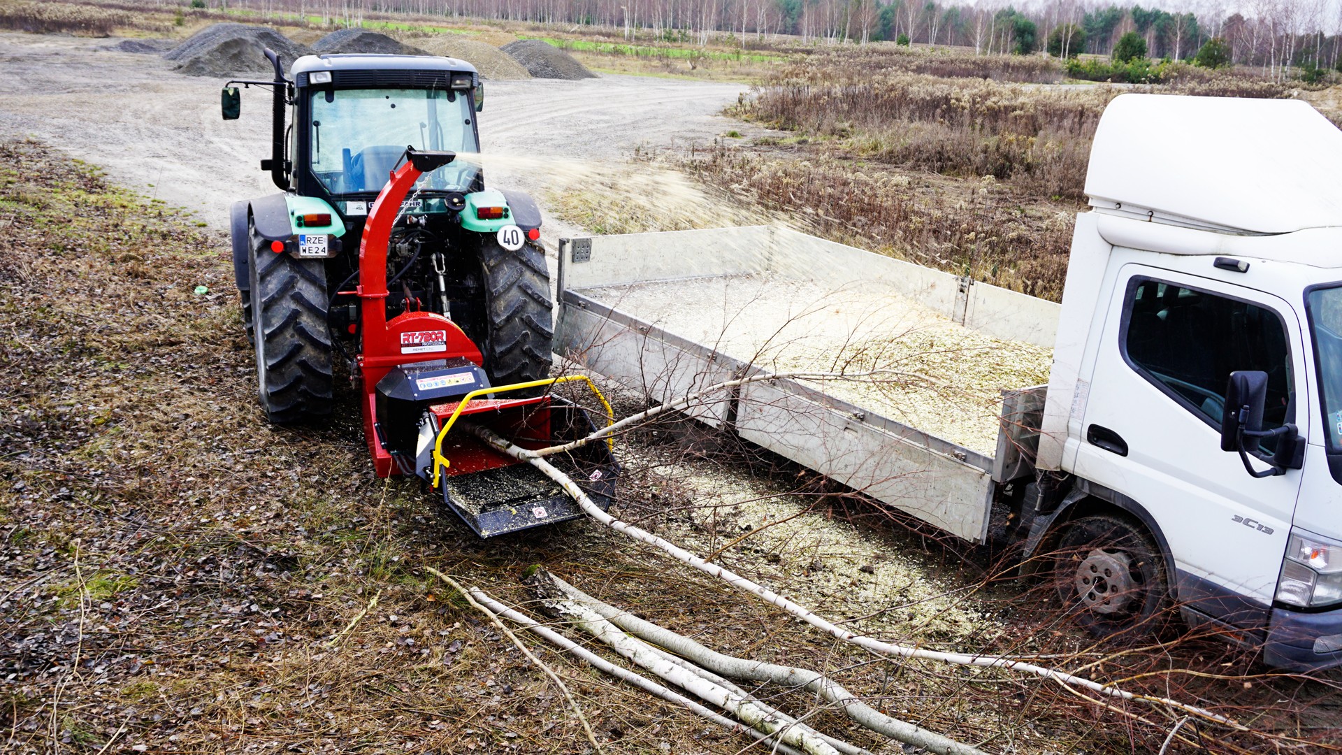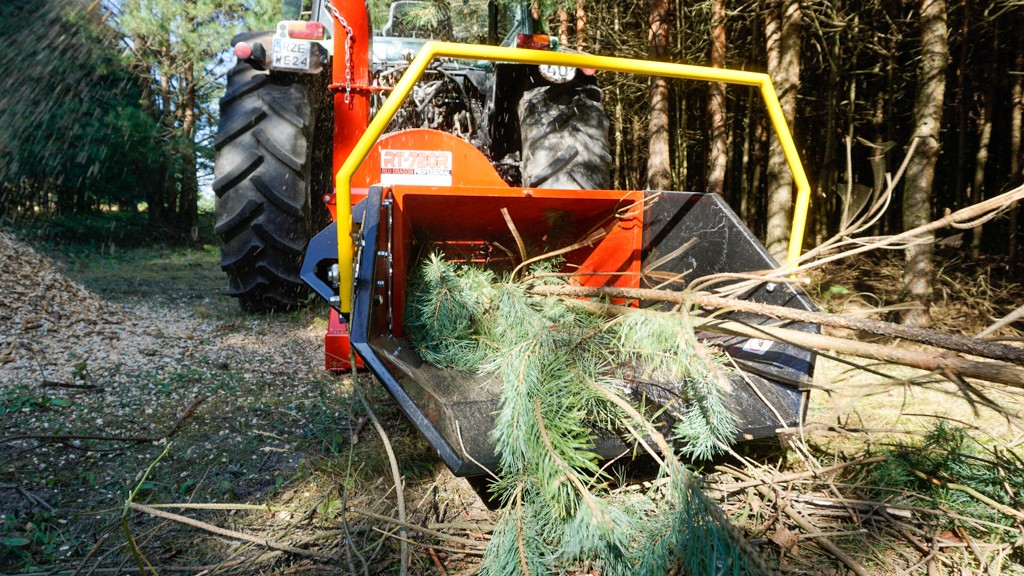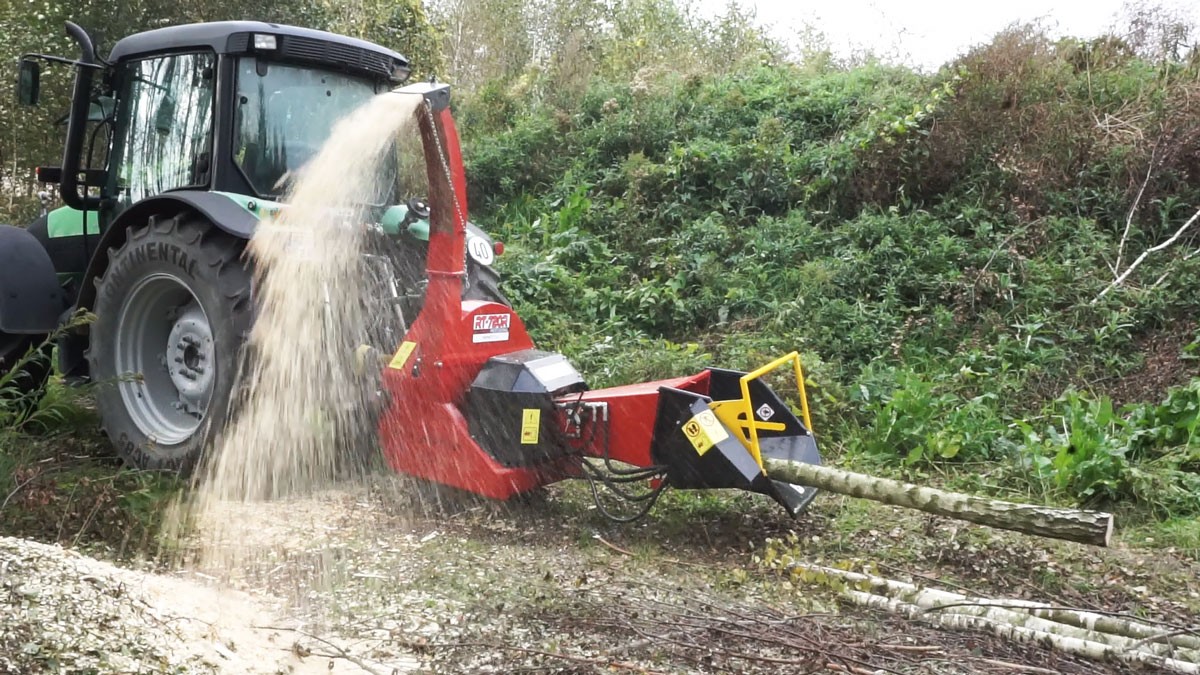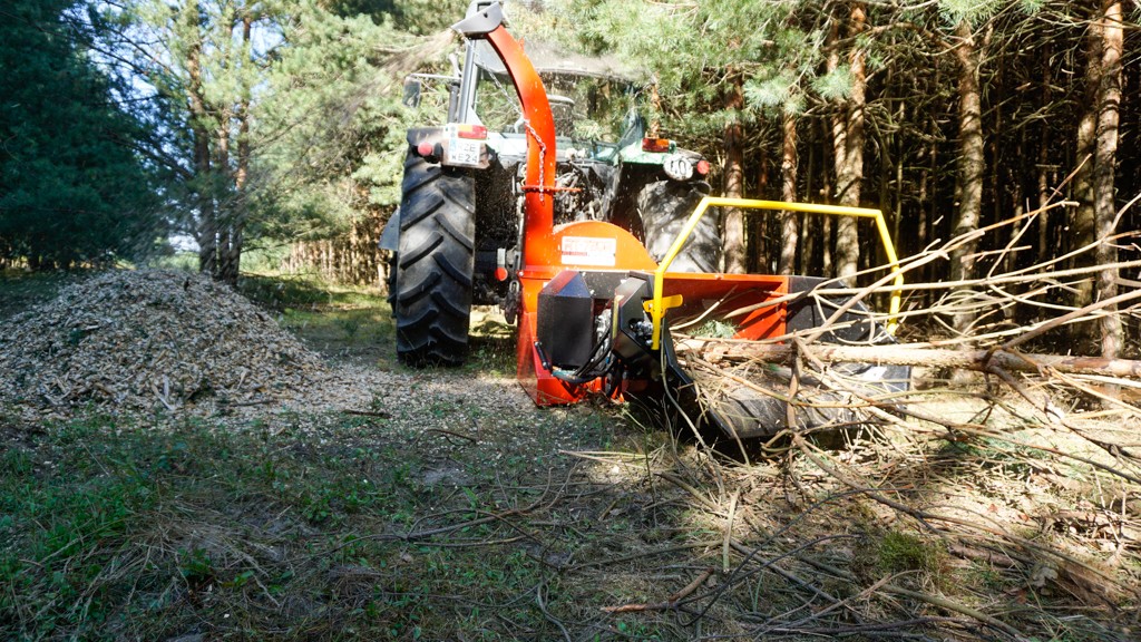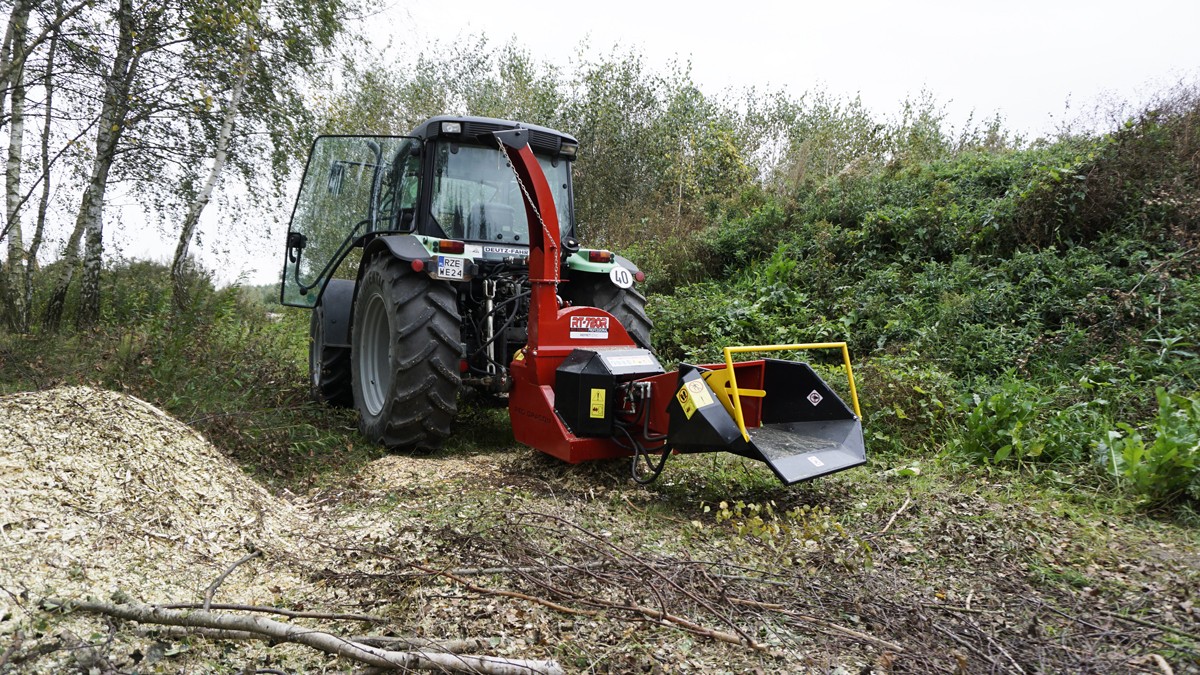 Tocătorul are un sistem hidraulic de tragere a lemnului.